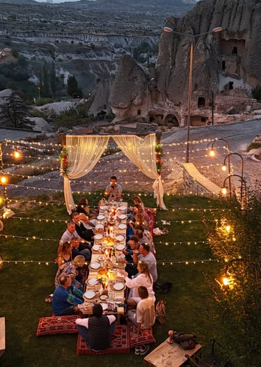 Sunset Wine Garden allows you to experience a unique sunset in Cappadocia with its special services for groups. Delicious food, fine wine tastings and fun events make this special evening unforgettable. If you are planning a group event in Uçhisar, these opportunities offered by Sunset Wine Garden are just for you!