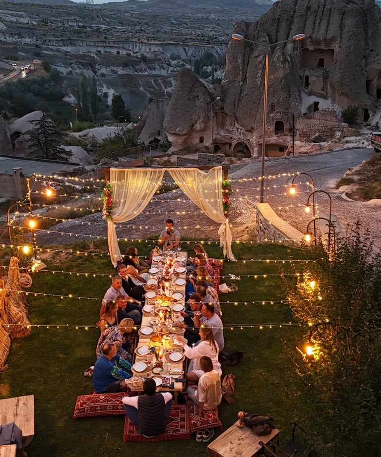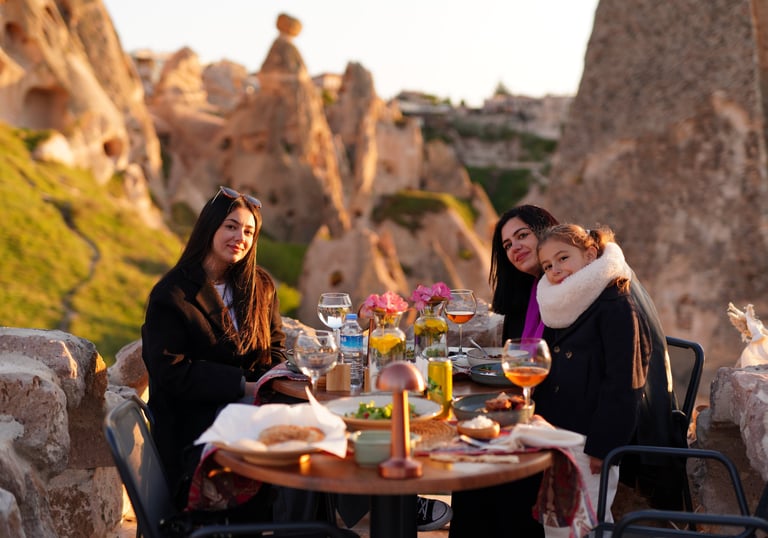 Sunset Wine Garden is one of the most ideal places for groups looking for a special experience in the fascinating atmosphere of Cappadocia. Combining the unique view of Uçhisar, this venue offers an unforgettable sunset experience full of wine tastings, delicious meals and fun activities.